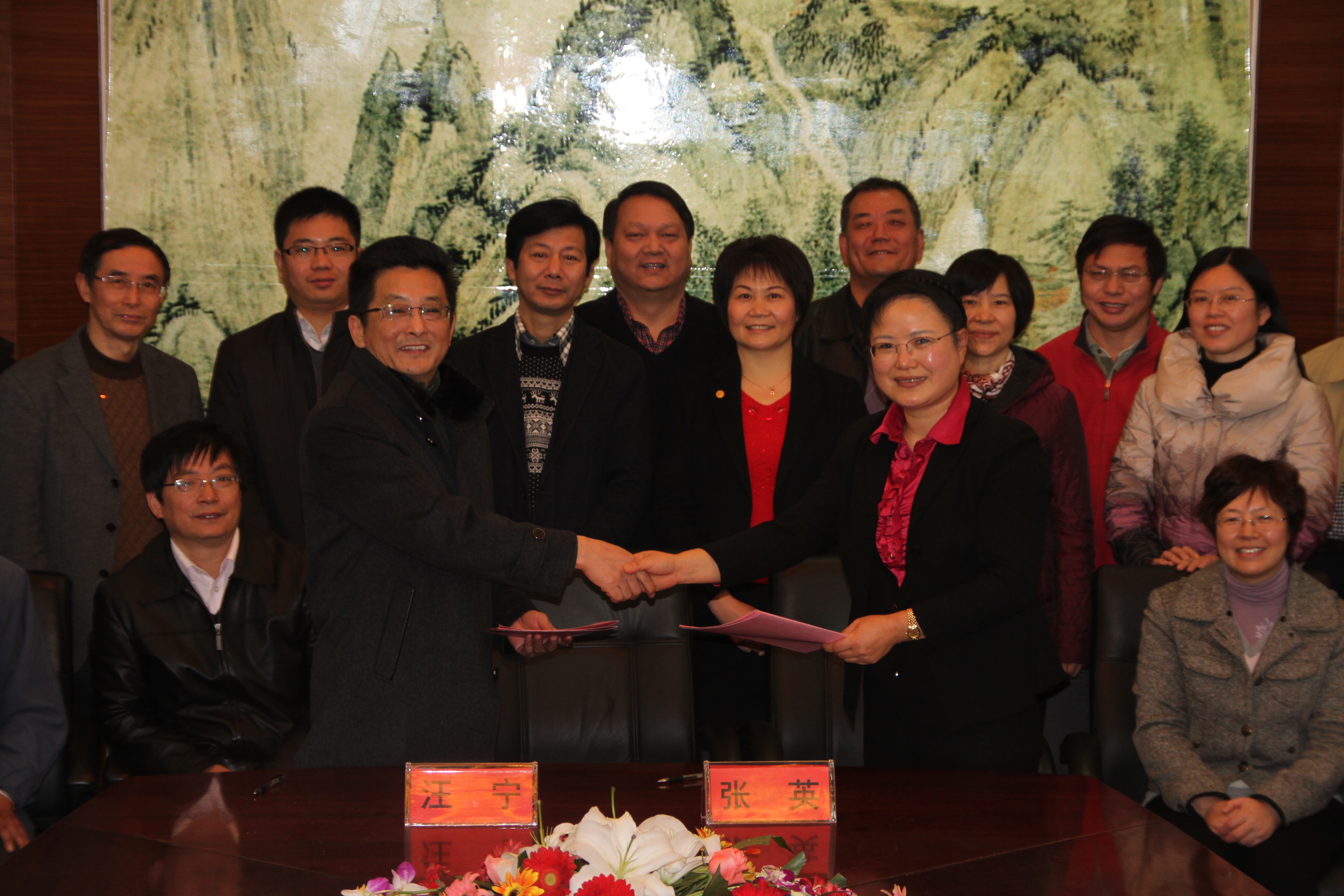 上午9點,民建省委會組織處處長高波、民建中央委員、浙大主委張英等一行17位領導來到浪莎集團,參加浙大民建委員會與民建義烏總支建立友好組織的簽字儀式。義烏統戰部王瑞金部長、民建義烏主委汪寧等12人出席會議,并分別發表重要講話。