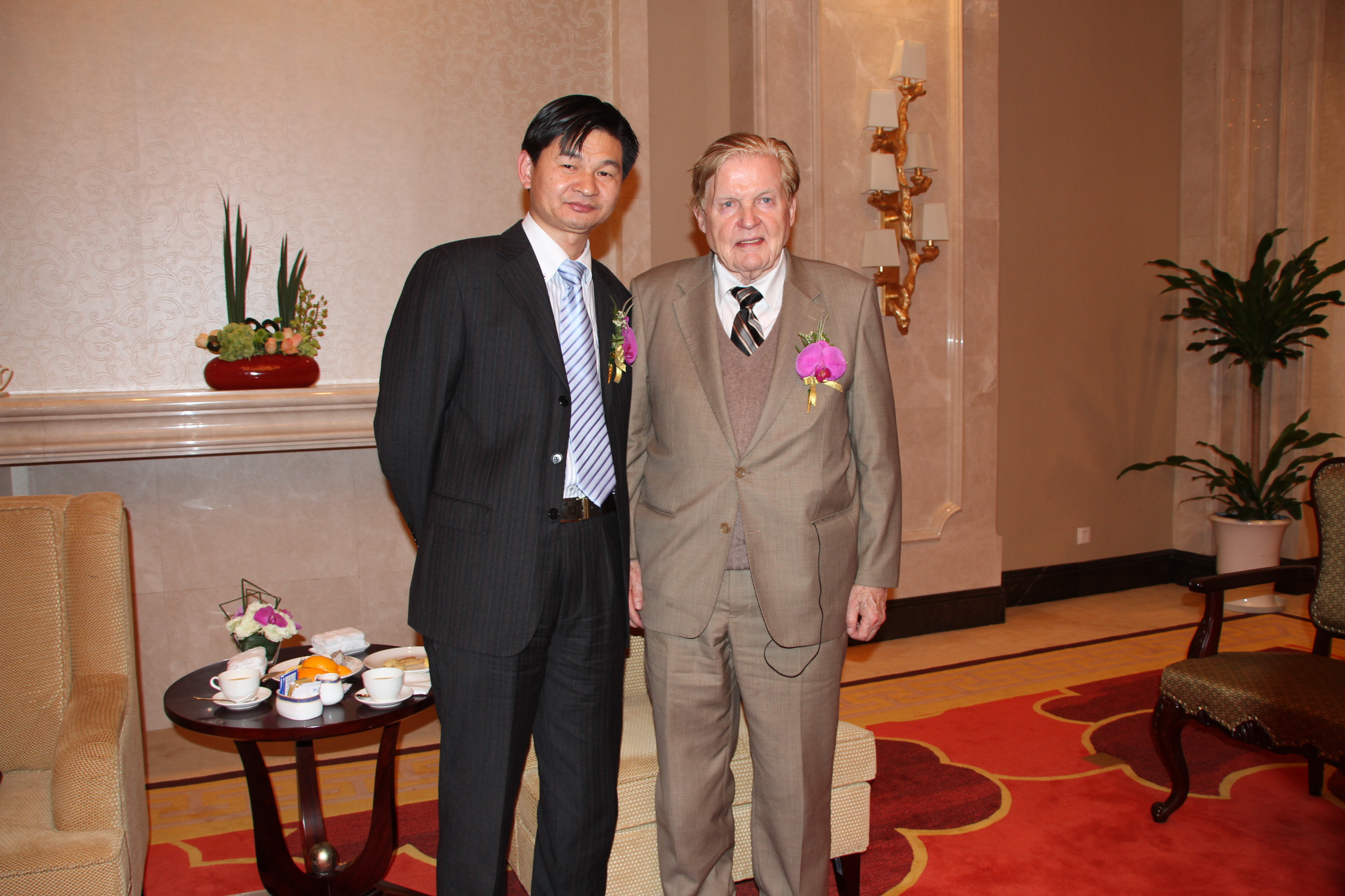 會(huì)后翁總裁與蒙代爾先生合影留念,蒙代爾先生親筆題詞,為浪莎送去美好的祝愿。