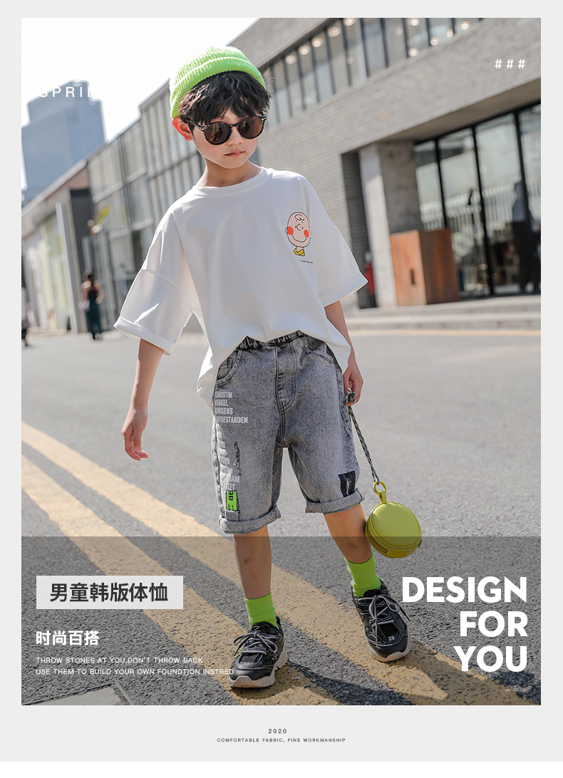 浪莎男童短袖t恤純棉2021新款中大童夏裝中童半袖韓版兒童裝上衣