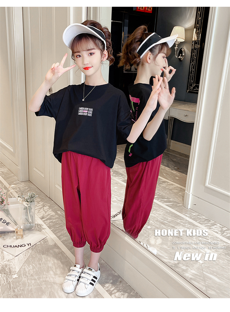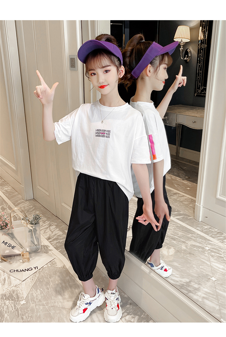 女童夏裝網(wǎng)紅套裝洋氣2021新款韓版時(shí)髦大童裝兒童短袖休閑兩件套