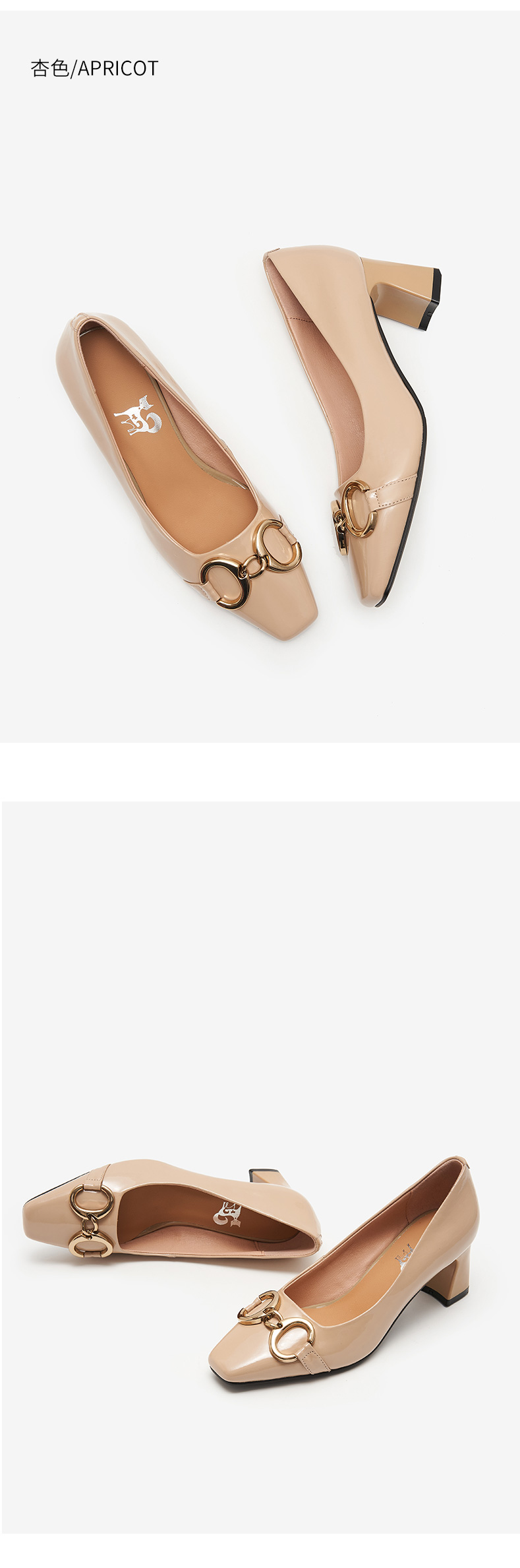 淺口高跟鞋女春夏鞋子2021新款英倫小皮鞋一腳蹬方頭真皮粗跟單鞋