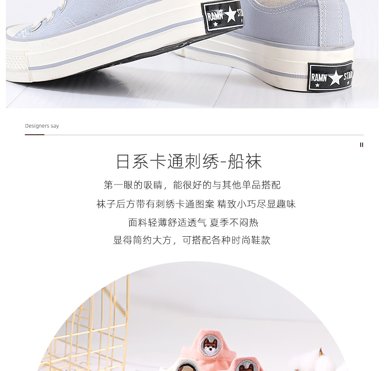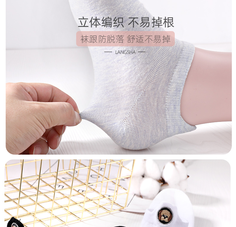 浪莎襪子女士淺口船襪春夏季薄款隱形短襪夏天可愛刺繡ins潮棉襪